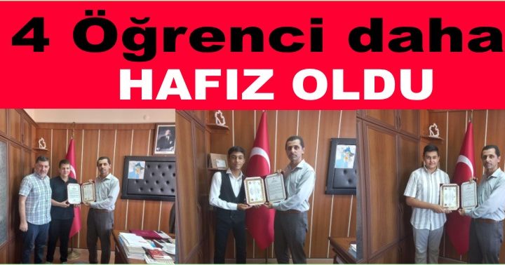 Hamza Erdil, Eymen Faik Bulat, Enes Yeni ve Hüseyin Mert Yeşilöz isimli öğrenciler, hafız oldu. Aziz Mahmut Hüdai Erkek Kur’an...