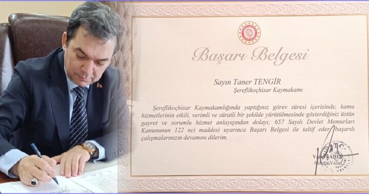 İlçe Kaymakamı Dr. Taner Tengir’e, Ankara Valisi Vasip Şahin tarafından ilçede yaptığı başarılı çalışmalarından dolayı Başarı Belgesi ile ödüllendirildi. 2024...
