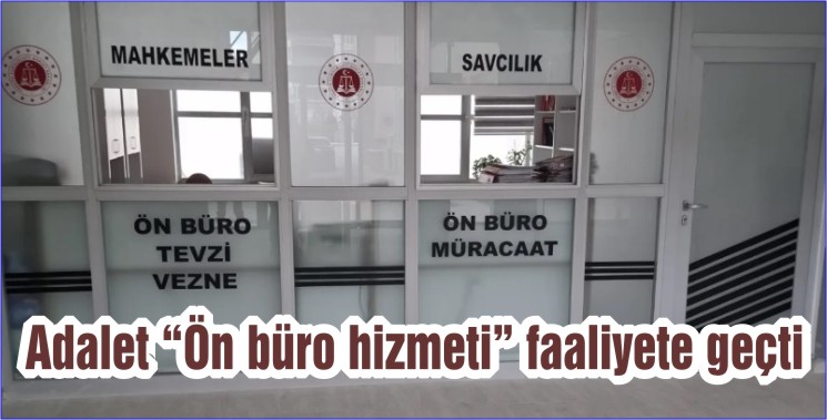 İlçemizde ilk kez uygulamaya konulan ön büro, vatandaşlarımızın adliyedeki işlerini tek noktadan yapabilmesini sağlamakta.