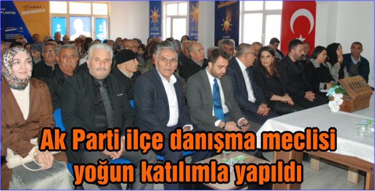 Cumartesi günü öğle saatlerinde Ak Parti İlçe binasında yapılan İlçe Danışma Meclisi toplantısına Ak parti Ankara Milletvekili Jülide Sarıeroğlu, Ak Parti İl Başkan Yardımcısı Mehmet Ali Kayabaşı, İlçe Koordinatörü Ahmet Akgün ve çok sayıda partili katıldı. Salonun adeta hınca hınç dolduğu, bir çok partilinin dışarında kaldığı İlçe Danışma meclisi, saygı duruşu ve istiklal marşımızın okunması ile başladı.