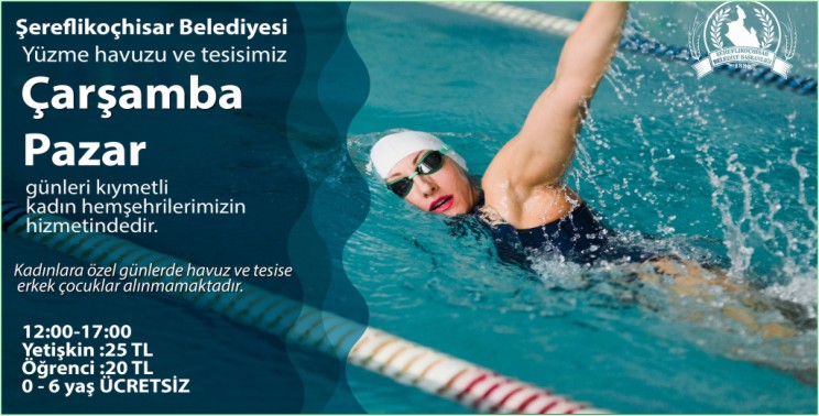 Çarşamba ve Pazar günleri olmak üzere haftada iki gün, saat 12.00-17.00 arasında kadınlara hizmet verecek olan Yüzme Havuzuna, erkek çocuklar alınmayacak.