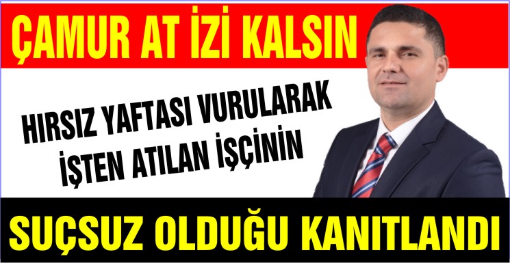 İlçemiz belediyesinde geçtiğimiz aylarda yaşanılan ve Belediye Başkanı tarafından hırsızlık yaftası vurularak işten atılan C.Ö’nün yapılan soruşturma sonrası suçsuz olduğu kanıtlandı. Hırsız yaftası vurulan C.Ö’nün avukatı Taylan Çağlar Temizkan Belediye Başkanına ithafen yapmış olduğu açıklamasında; “Sayın Başkan, işsizlik sizin de hakim olduğunuz bir konu. Asılsız iddialar ile bir kişinin ekmeği ile oynamak ve bu iddianın asılsızlığı ispatlanmasına rağmen halen bu iddiayı sürdürmeniz açıkçası bulunduğunuz makamla hiç bağdaşmıyor” dedi.