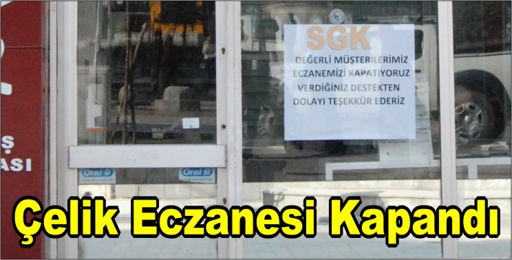 Çelik Eczanesi’nin kapanmasıyla ilçemizde eczane sayısı 9’dan 8’e düştü.