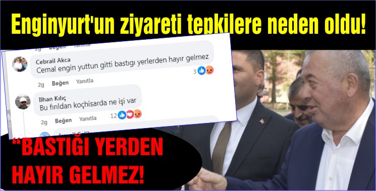 Ilhan Kılıç, Bu fırıldan koçhisarda ne işi var. Cebrail Akca, Cemal engin yuttun gitti bastıgı yerlerden hayır gelmez. Taner Polat, Rüzgar gülü de teşrif etmiş Koçhisar’ımıza gari rüzgar ne taraftan eser yön ne taraftan olur bilinmez… Mehmet Guzel, sayın Başkan öncelikle yaptığınız ziyaretten dolayı teşekkür ediyoruz bizleri onere ettiniz  eyvallah lakin bu paylaşımınızdaki siyasetin fahişesi ünvanına sahip bir zat ile aynı karede bulunmanız pek şık olmadı. Duran Yalcin, Mehmet Guzel De sene Engin yurt heryeri kokutmuş bir bizim ilçe kalmıştı demekki orayada uğramış. Drvsutlu, Bu cemal yanar döner her telde oynuyor. Mahmut Serin, Engin Yurt başka partide olsaydı neler söylerdiniz neler! Cemal’i Şeref sıfatı taşıyan ilçe ve parti içine sindiriyorsa… Sebahattin Ekmen Aman başkanım buna güvenme bu tam bir dönektir asenayı hiç aratmaz bizim şerefli koçhisara huzur getirmez tam aksine huzurumuzu kaçırır sakın birdaha gelmesin bizim ilçemşze bu kapı kapı dolaşır. Mustafa Dogan, Ya arkadaş bu tür insanları getirince nereye varmak istiyorsunuz? Bu şahıs CHP den millet vekiligi almak içini girmedik kılık kalmadı.!!! Başkanım sizi bunun yanına görmek hiç istemiyoruz!!!. Ali Öztaş, orda olsaydım ilk soracagım soru şu olurdu ülkemin bu hale düşmesinin sebebinin baş sorumlusundan birisin mutlumusun