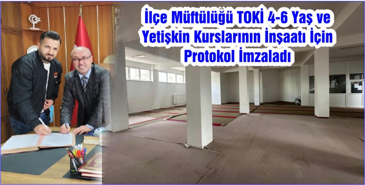 İlçe Müftülüğü tarafından İlçemiz Mehmet Akif Ersoy Mahallesi TOKİ caminin alt katında bulunan Kur’an kursunun tadilat ve tamirat çalışmaları için protokol imzalandı. Yapılacak çalışma sonrası 4-6 yaş Kuran kursu ve Kadın Kuran Kursu olarak hizmet verecek.