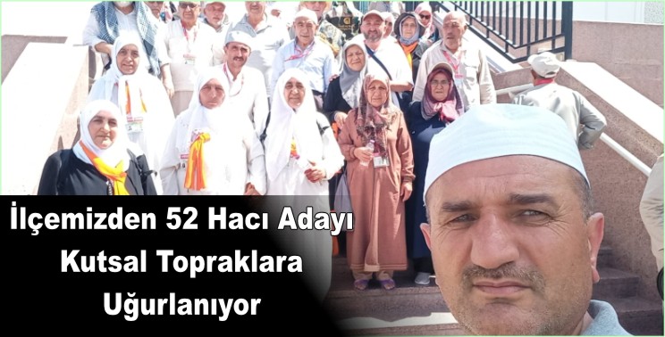 Tüm yurtta olduğu gibi İlçemizde de hacı adayları kutsal topraklara uğurlanıyor. Bu yıl ilçemizden 52 Hacı adayının kutsal topraklara uğurlanacağa belirtildi.