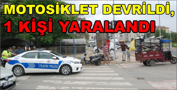 MOTOSİKLET DEVRİLDİ, 1 KİŞİ YARALANDI