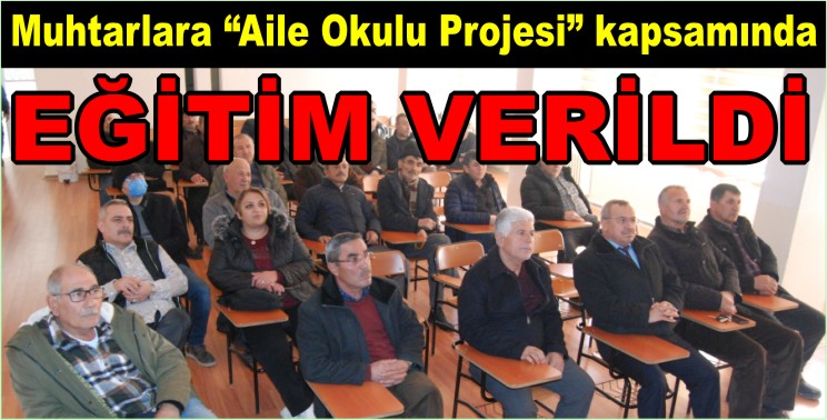 İlçemiz Mahalle Muhtarlarına Milli Eğitim Bakanlığınca yürütülen “Aile Okulu Projesi” kapsamında eğitim düzenlendi.