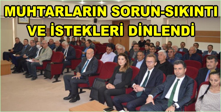 İlçemiz merkez ve çevre mahalleler olmak üzere toplam 64 mahalle muhtarı, Kaymakam Zafer Engin, Belediye Başkanı Memiş Çelik ve kurum müdürleri ile düzenlenen toplantıda bir araya gelerek, sıkıntılarını ve taleplerini aktardı.