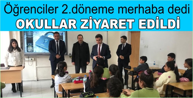 Okulun ilk günü İlçe Milli Eğitim Müdürü Uğur Atılgan, Şube Müdürleri Murat Turan ve Mehmet Aydın ile birlikte okulları ziyaret ederek, öğrencilerle bir araya geldiler ve 2.dönemde başarılar dilediler.