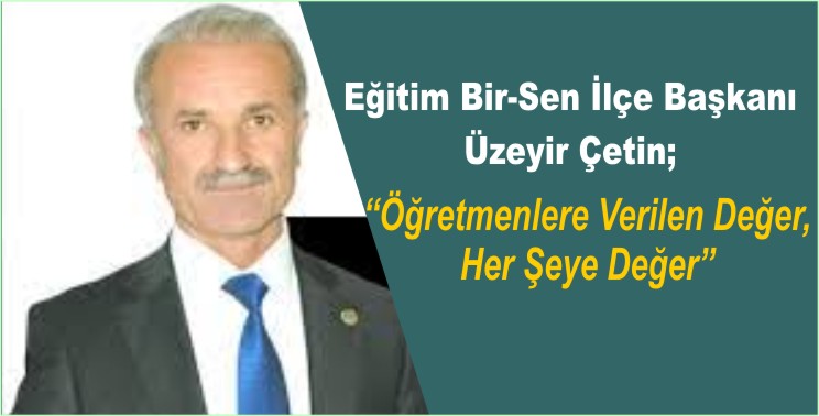 Eğitim-Bir-Sen Şereflikoçhisar Başkanı Üzeyir Çetin; “Her alanda kalkınarak vatan ve millet varlığını ilelebet payidar kılma davamızın en sağlam kaynağı olan insanımızı, hayatın her alanı için bilgi ve beceriyle donatarak yetiştiren öğretmenlerimiz, geceyi gündüze katarak akıttıkları terle onurlu bir mesleği icra etmektedir. Ona vereceğimiz önemin kendimize verdiğimiz önemden, göstereceğimiz saygının kendimize duyduğumuz saygıdan kaynaklandığını bilerek; kalplerinin vatan, millet, insanlık aşkı ve idealiyle dolu olduğundan şüphe etmediğimiz öğretmenlerimizi, üstün gayret ve fedakârlıklarından dolayı kutluyoruz” diye konuştu.
