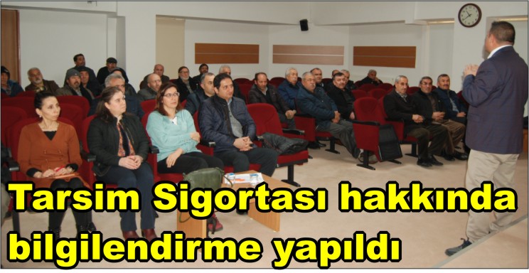 Kaymakamlık toplantı salonunda düzenlenen toplantıda Tarsim sigortası hakkında bilgiyi, Tarsim Ankara Bölge Müdür Yetkilisi Uzman Ali Osman Tan tarafından verildi.