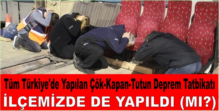 Ülkemizde ilk kez, tüm vatandaşların katılımıyla aynı gün ve aynı saatte yapılan deprem tatbikatı, ilçemizde saat 18.57’yi gösterdiğinde sadece camiden tatbikatın yapıldığına dair anons yapıldı.