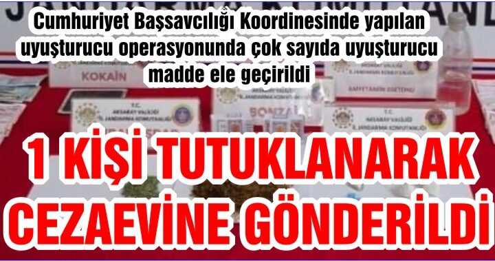 Cumhuriyet Başsavcılığı Koordinesinde yapılan uyuşturucu operasyonunda çok sayıda uyuşturucu madde ele geçirildi 1 KİŞİ TUTUKLANARAK CEZAEVİNE GÖNDERİLDİ