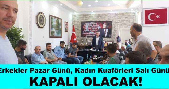 İlçemiz Esnaf ve Sanatkarlar Odası Başkanı Mehmet Çetin, erkek Kuaförlerinin pazar günü, bayan kuaför ve güzellik salonlarının ise Salı günü...