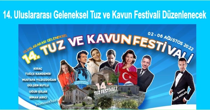 Uzun bir aradan sonra İlçemiz Belediyesi tarafından 02-06 Ağustos 2022 tarihleri arasında 14.Uluslararası Geleneksel Tuz ve Kavun Festivali Düzenlenecek. Simklas...