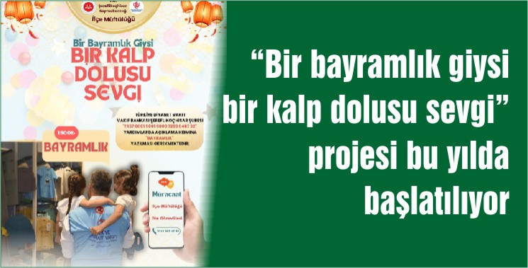 İlçe Müftülüğü tarafından geçtiğimiz yıl ilk defa hayata geçirilen ve 335 çocuğumuzun mutlu edildiği “Bir bayramlık giysi, bir kalp dolusu sevgi” projesi bu yılda hayata geçiriliyor. İlçe Müftülüğü ve Türkiye Diyanet Vakfı iş birliği ile yapılan olan projeye vatandaşlarımızın desteği bekleniyor.