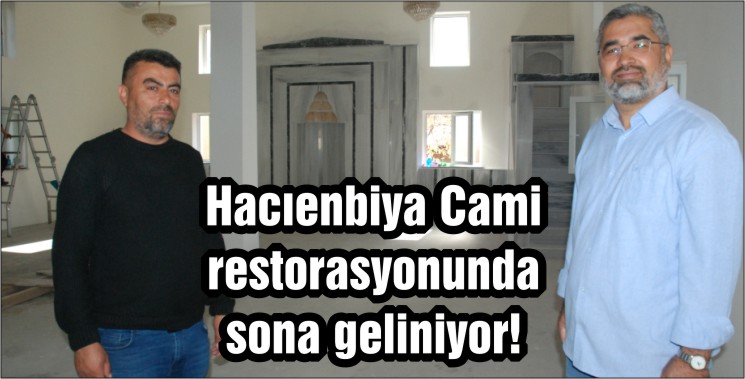 Hacıenbiya Mahallesi Muhtarı Özgür Özden ve Dernek Başkanı Cemal Bulat tarafından takip edilen restorasyon çalışmalarına yavaş yavaş sona yaklaşıldı. Adeta tepeden tırnağa restore çalışmaları yapılan camide son olarak yerden ısıtma sistemi döşenilen caminin halıları serilmeye başlandı.