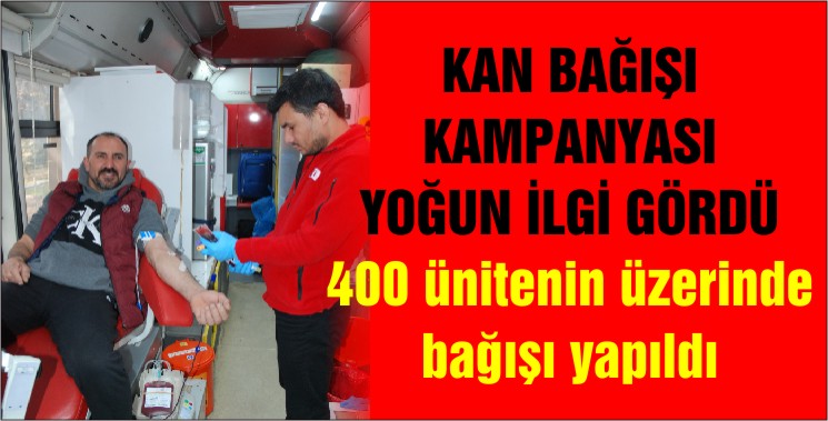 Türkiye kızılar Derneği tarafından ilçemizde 6 gün boyunca düzenlenen kan bağışı kampanyasında yaklaşık 400 ünitenin üzerinde kan bağışı yapıldığı bu rakam ile bu güne kadar yapılan bağışların en çok sayısı olduğu edinilen bilgiler arasında yer aldı.