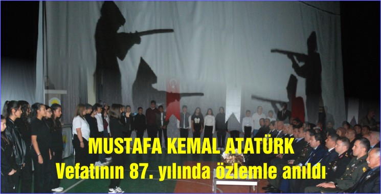 Mustafa Kemal Atatürk’ün, ebediyete irtihalinin 87.yıldönümünde düzenlenen anma programla özlemle anıldı. Hükümet Konağı Bahçesinde çelenk sunulmasıyla başlayan anma programı, Nizamülmülk Mesleki ve Teknik Anadolu Lisesi salonunda düzenlenen programla sona erdi.